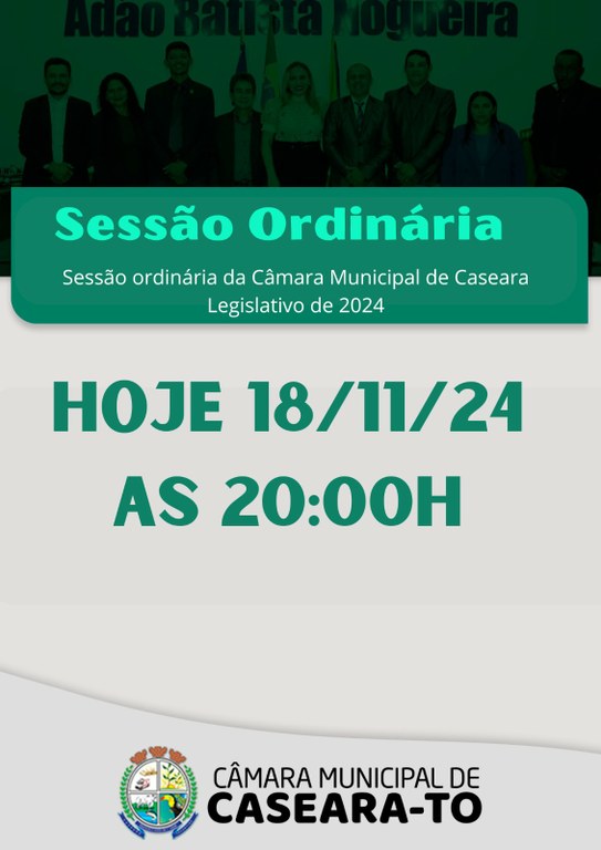 A Câmara Municipal de Vereadores de Caseara convida toda a população para acompanhar a Sessão Ordinária que será realizada nesta segunda-feira, às 20h, na sede da Casa de Leis.